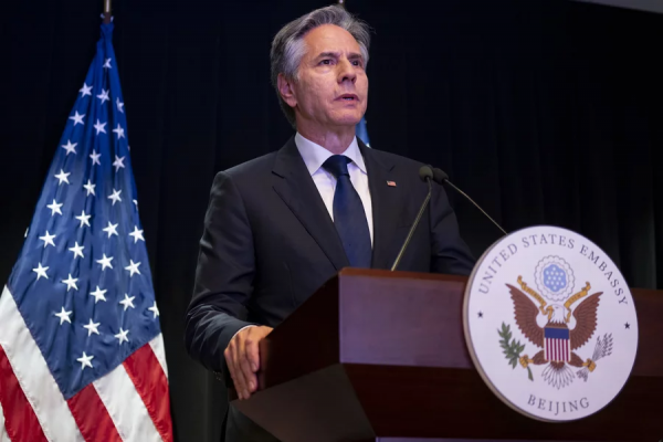 (布林肯在美国驻华大使馆发表讲话)