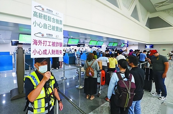 (岛内仅靠举牌来阻止年轻人参与诈骗活动)