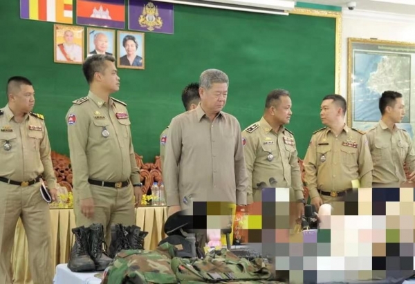 (西哈努克省省长郭宗朗在警察局的发布会现场)