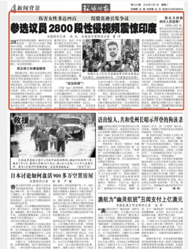 印度卡纳塔克邦人民院青年议员普拉杰瓦·雷凡纳被控对400多名女性实施性侵犯,并拍摄约2800段视频进行勒索。