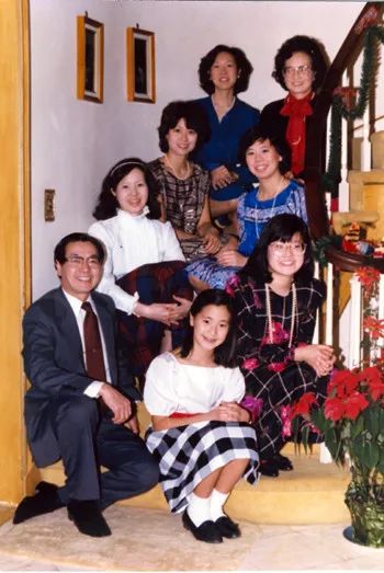● 1994年6月9日,赵安吉哈佛毕业典礼,与父母及同是哈佛校友的三位姐姐赵小兰(右二)、赵小美(右一)、赵小婷(左二)合影