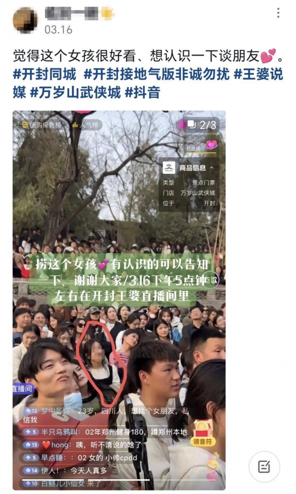 现在,连赵梅视频和直播的评论区都变成了相亲角,甚至还有收看直播的观众直接在人群中发现了"那个她"。