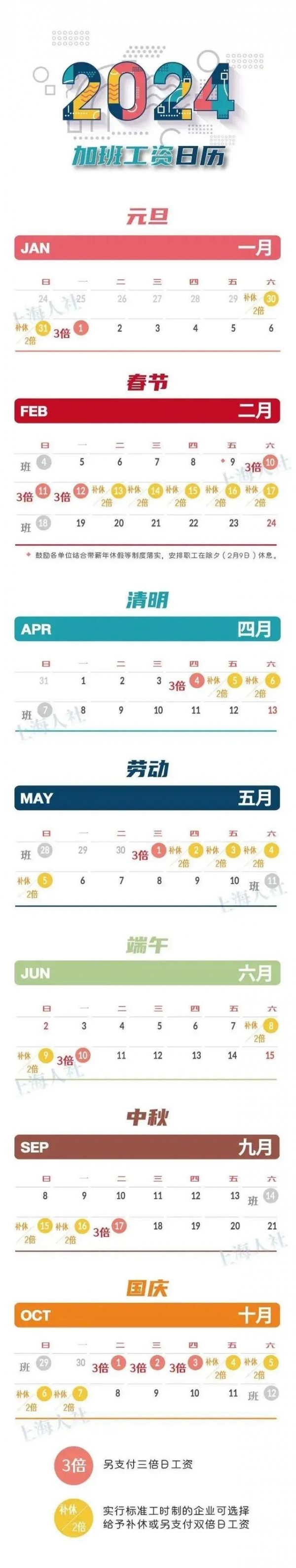 另外,今年要在节假日加班的小伙伴,这里有一份"加班工资版"日历,可以收藏哦。