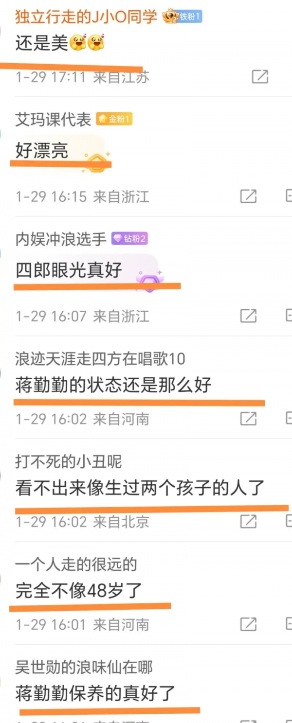 看到48岁蒋勤勤的状态,网友直呼四郎的眼光真好,好福气!还有网友说我二十五岁的状态都没她好,求女神快点告知保养秘诀!
