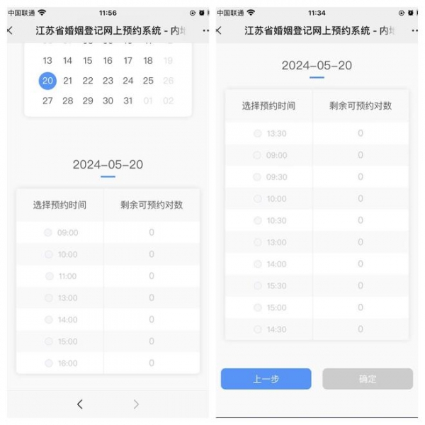 而南京市秦淮区民政婚姻登记处夫子庙婚姻登记点,"521"预约满,"520"仅早上9时的时间段剩下3个名额。