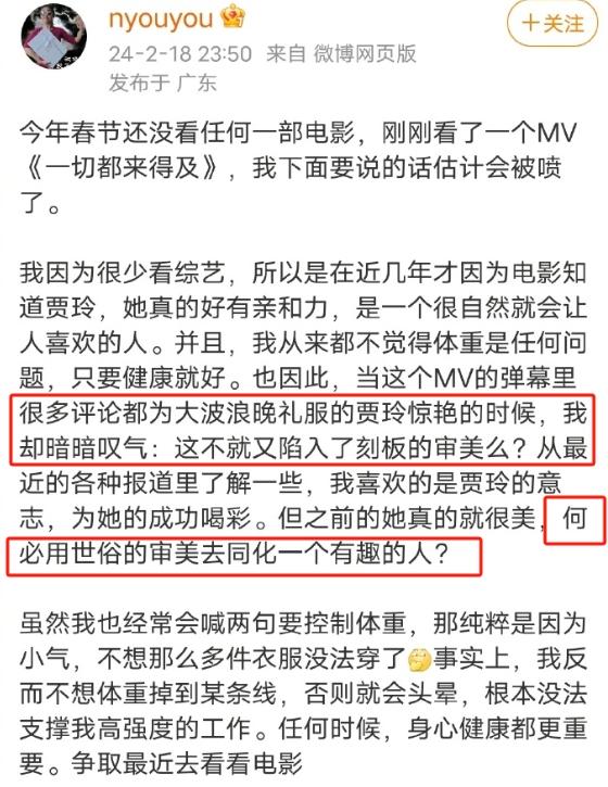 对于网上的纷纷扰扰,2月23日,贾玲疑似发文回应了网上对自己的争议。