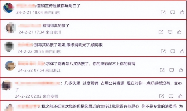 只是没有想到的是,自大年初一就被各种营销"狂轰滥炸"十几天的观众早已经审美疲劳,逐渐生出一些厌烦的情绪。纷纷在网上吐槽起贾玲,希望别再营销了,好感快没有了。