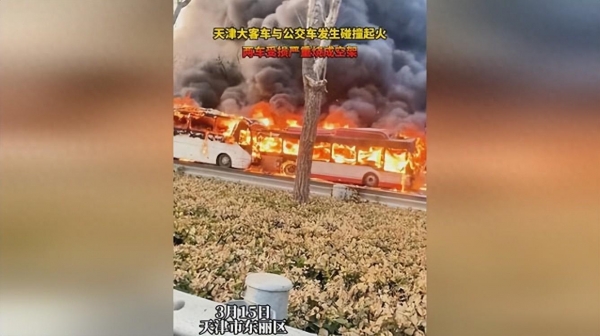 3月15日,天津津汉公路上,一辆大巴车与公交车发生了严重的相撞事故,随后引发了熊熊大火。现场视频显示,两辆车辆瞬间被火焰吞噬,火光冲天,浓烟滚滚。火灾现场的恐怖场景让人揪心,人们纷纷祈祷车上的乘客能够安全逃生。