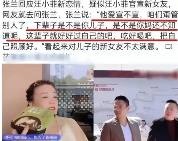 当恋情曝光后,网友们也纷纷跑到汪小菲母亲张兰的直播间,看她这次是如何看待儿子的新女友。不过相比汪小菲的热情,张兰则显得非常无奈,并且言语之间似乎并不满意儿子的新女朋友,称:"他爱宣不宣,咱们甭管别人了。还不知道下辈子是不是你儿子,这辈子就好好过好自己吧,吃好喝好,把自己照顾好。"