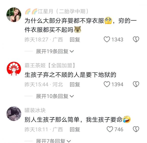 还有网友非常气愤问为什么大部分气婴都不给穿衣服,穷的衣服买不起吗?心真的狠,生孩子弃之不顾是要下地狱的!