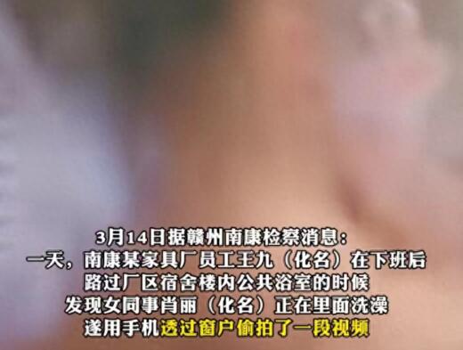 根据赣州南康检察信息:在某一天,南康某家具厂男员工在下班后路过厂区宿舍楼下的公共浴室的时候,发现某名女同事正在里面洗澡,于是拿出手机透过窗口偷拍了一段视频!