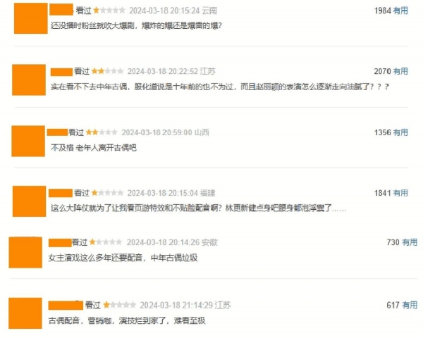 有观众认为剧情推进缓慢,人物关系处理不当,导致整体节奏感不佳,失去了仙侠剧应有的张力和激情。