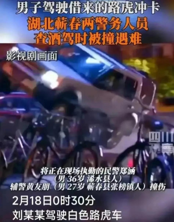 正当人们沉浸在悲剧中时候,不到6个小时,2月18日零点,湖北又发生类似的悲剧。刘某酒后被交警发现,竟然驾驶路虎撞击交警,导致执勤人员死亡。