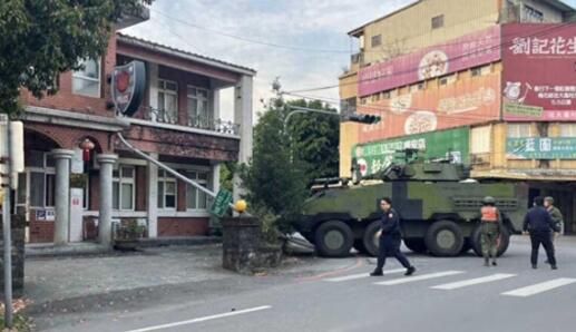近日,台军"云豹"装甲车径直撞向派出所,路灯被撞到严重变形,倒塌时还压到派出所外墙。