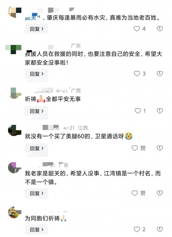 在4月21日,广东的一些居民在接受红星新闻的采访时表示,虽然降雨对他们的生活产生了一定影响,但是当地人已经做好了相应的应急准备,包括发布提醒和警告。从韶关市武江区政府办公室得知的信息,之前因为通信电缆问题导致中断的江湾镇通信已经重新恢复,今天市级和区级的领导也已经赶往现场,对于一度因通信电缆问题而失去联系的情况,现在已经得到了改善。