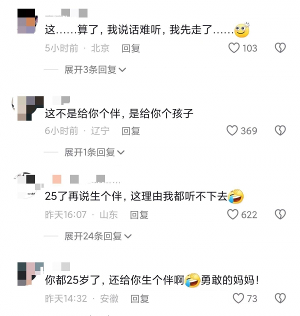 有网友表示:"这不是给你个伴,是给你个孩子。"
