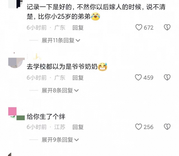 有网友认为记录一下还是好的,不然以后嫁人的时候,说不清楚小25岁的弟弟。