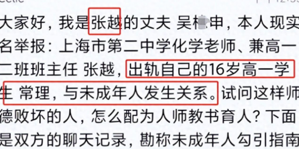 2月18日,一位男士在网上实名爆料说:自己当老师的妻子出轨了一位16岁的男学生,两人甚至发生了男女关系!