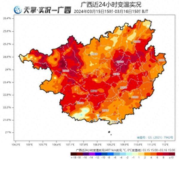 在冷空气影响下,广西各地日平均气温下降6~8℃、局地超10℃