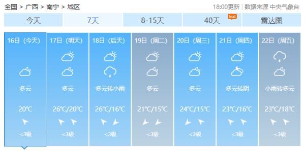 (南宁未来一周天气预报)
