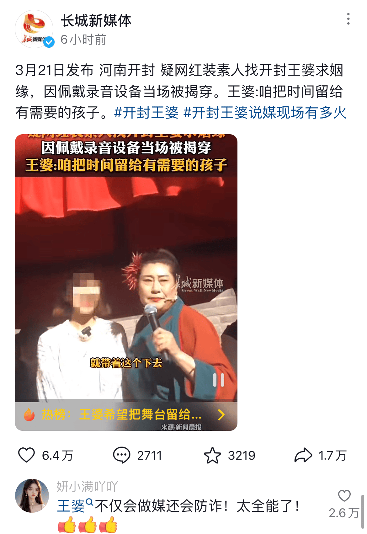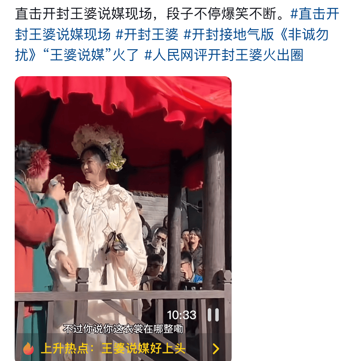 最近,"开封王婆"火了,不仅被各大媒体点名,更有许多单身人士前往寻找姻缘,在她的撮合下,有好几对已经步入婚姻的殿堂。不同于其他的相亲节目,开封王婆主持的节目接地气且充分带动了当地的旅游业。