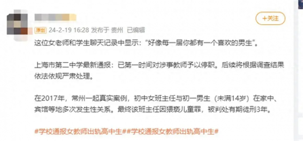 出轨女教师还曾与往届学生有过不正当关系?教育部门回应!