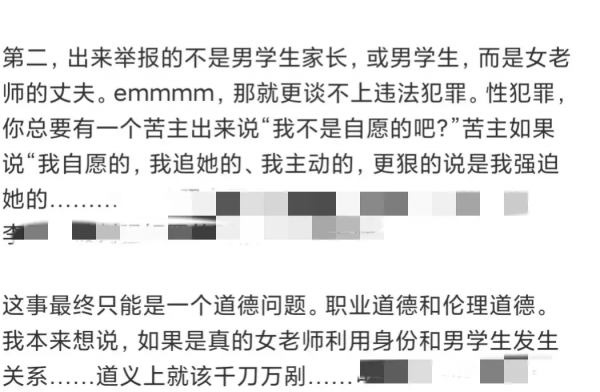 有网友也认为,这个事情一个愿打一个愿挨,男方及其监护人都没有追究,归根结底是道德层面的事情。