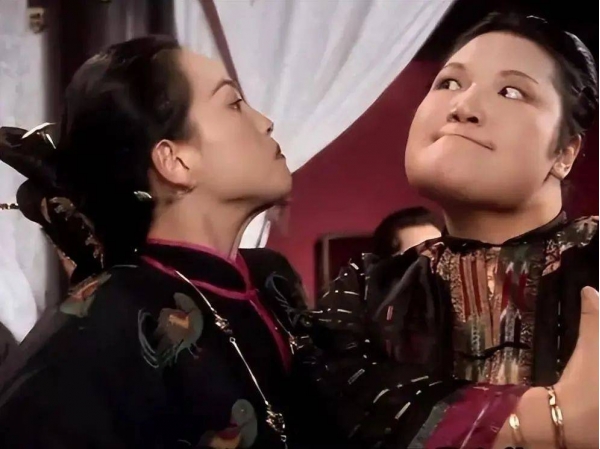 后来因为出演了周星驰《逃学威龙》中的"灭绝师太"地理老师,给周星驰留下不错的印象,所以两人之后又再次合作了《唐伯虎点秋香》,给观众留下了经典的荧幕形象"石榴姐"↓