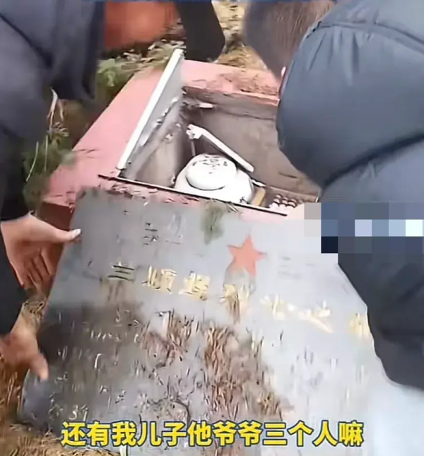 祖孙三代扶起倒在烈士墓碑上的树 轻轻擦去墓碑上的杂草和泥土