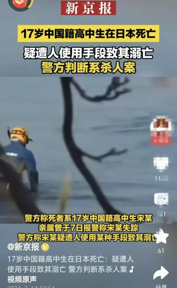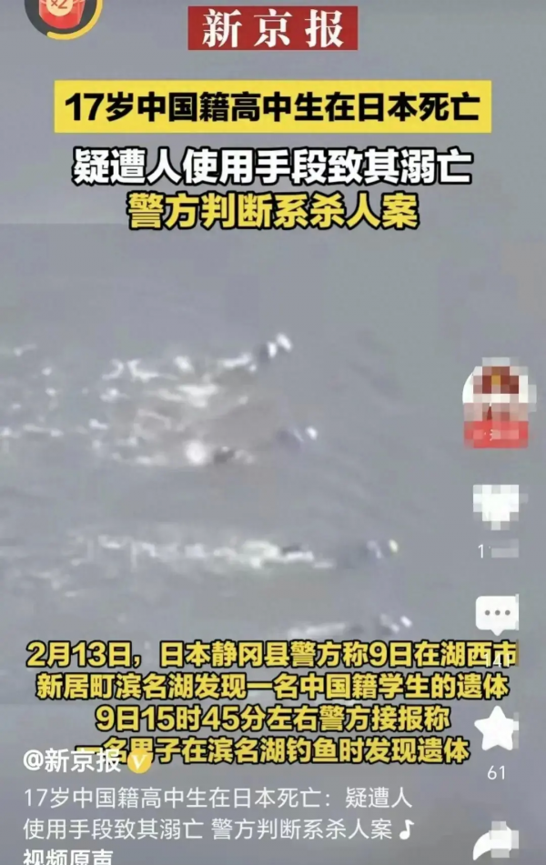 17岁中国籍高中生在日本死亡,恐人为干预致其溺亡!