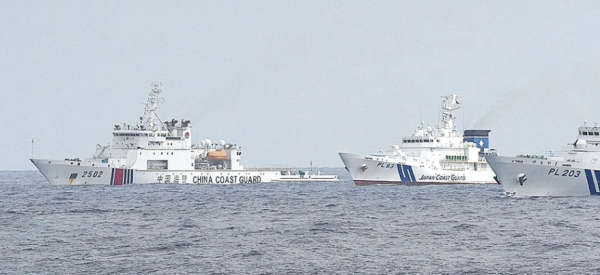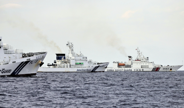 中日8舰钓鱼岛争锋,中国海警亮舰炮紧急截停