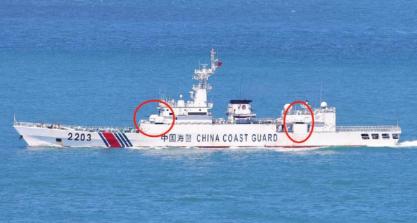 不过值得注意的还得是海警的2202舰,海警的2202号舰本身是海军053H2G护卫舰退役转交给海警的,舰艇本身的4座双联装37mm舰炮并未拆除。