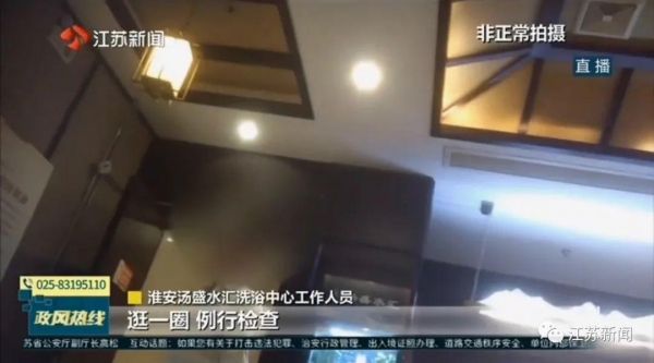 "汤盛水汇正常营业的,里面可以洗澡的,洗完澡了拿一身衣服给你,你就可以上楼,上楼了以后就有人给你安排,安排色情服务就来了,都是违法的。"知情人表示。