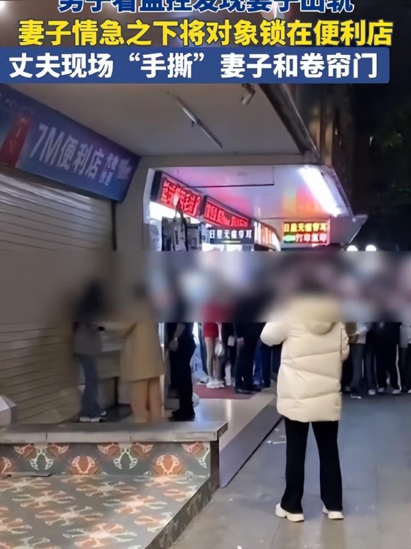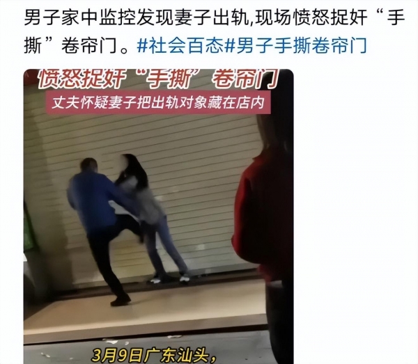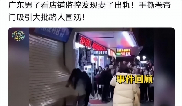 丈夫监控发现妻子出轨 妻子将情夫藏在店内,丈夫怒撕卷帘门,上百人围观