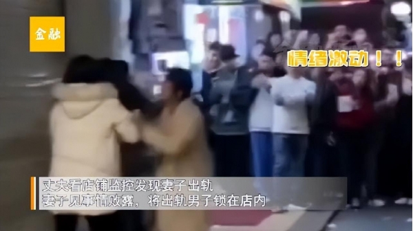 令人惊讶的是,当丈夫试图阻止妻子和情夫逃离时,妻子竟然将卷帘门锁上,将他们困在店内。这一举动不仅令丈夫无法接近妻子和情夫,也引起了围观人群的关注。很快,店内围满了好奇的人们,他们纷纷议论着这个令人瞠目结舌的场景。妻子的行动引发了公众的关注和谴责,她的所作所为引起了人们对婚姻和道德观念的深思。
