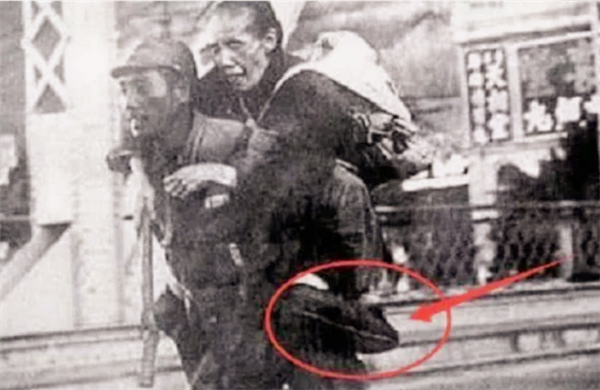 这张照片的背景是1937年的南京,照片的内容是一个日本士兵背着一位中国老太太穿梭于“枪林弹雨”,脸上还露出“仁慈”的微笑。