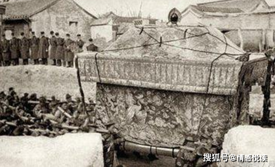 第三件事,演杠十日。慈禧的棺木是用金丝楠木制成的,重达一吨,为了抬起这口棺,但是杠夫,就召集了7920人。这近八千杠夫被分成60班轮替,将棺木从京城抬到唐山的定东陵。