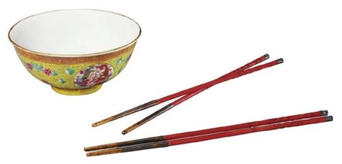 帝后合卺宴所用的“五彩吉祥”龙凤碗及筷子