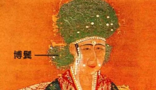“博鬓”是古代妇女的一种发饰,下垂过耳,鬓上饰有花钿、翠叶之类的饰物,为一种假鬓。此冠又称“九龙冠”,因其上饰有九龙四凤而得名。