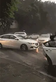 美女,慢点跑,雨大路滑别摔跤了
