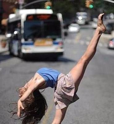 一字马俗称:劈叉,两条腿左右的叫横叉,前后分的叫竖叉,是体操和舞蹈中最常见的动作之一。这位美女看来欲与天公比高低啊,劈叉度数应该在180度以上!