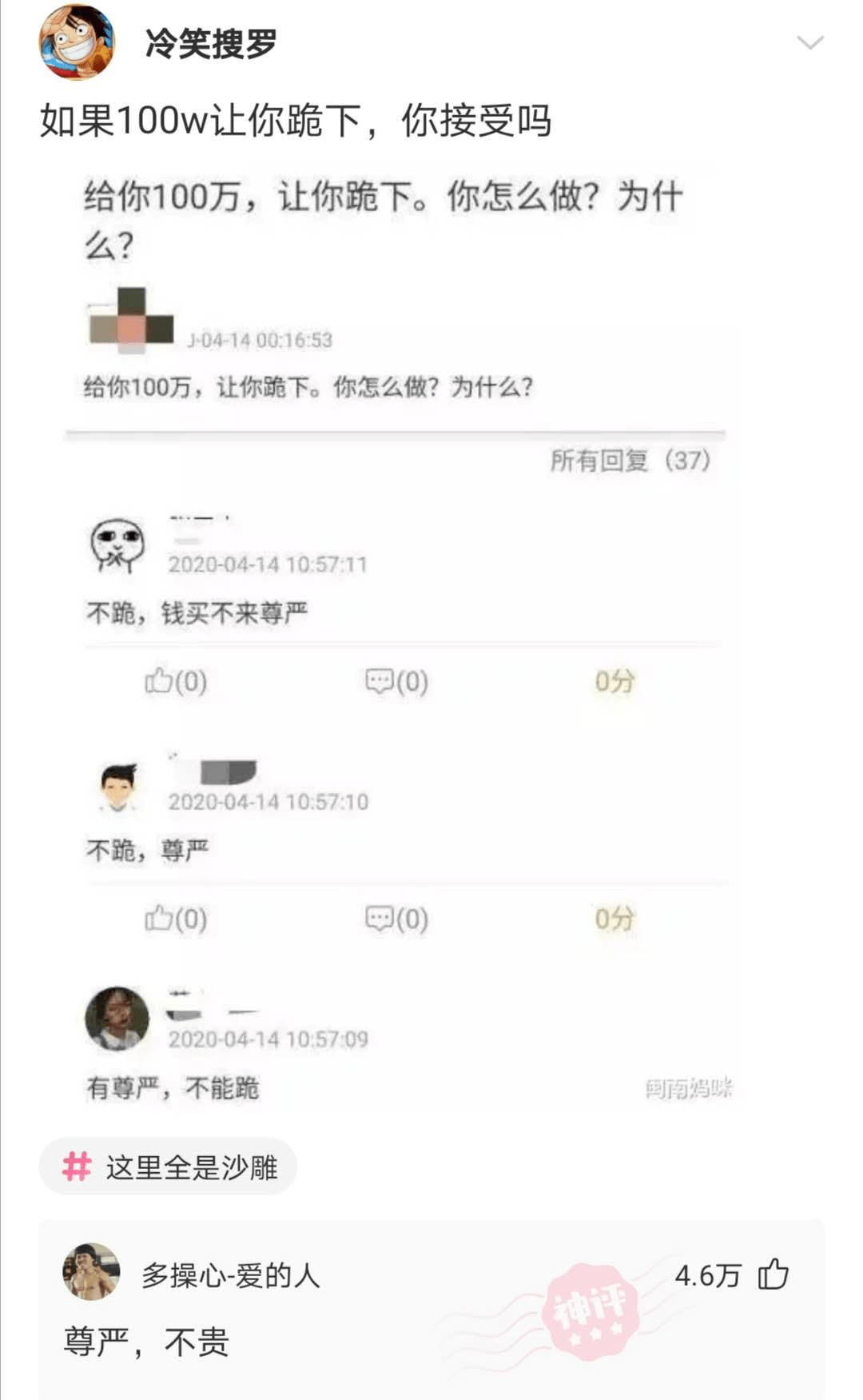 如果100w让你跪下,你接受吗?