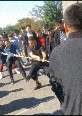看来在拔河比赛中,小哥是可有可无的一个角色