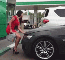 妹子你这是给汽车加机油润滑一下吗?你可能对汽车的构造有点误解了。