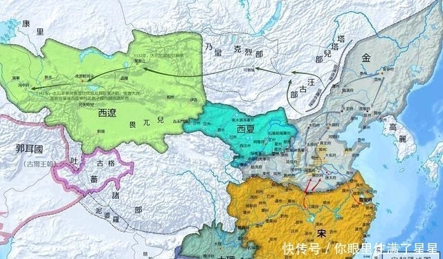 西辽版图最大时包括了今天的中国新疆全境、塔吉克斯坦全境、吉尔吉斯斯坦全境、乌兹别克斯坦大部、哈萨克斯坦东部、蒙古国西部,面积超过300万平方公里,是中亚地区的一代强权。金国(公元1115年-1234年),由完颜阿骨打建立,首都中都大兴府,位于今天的北京市。