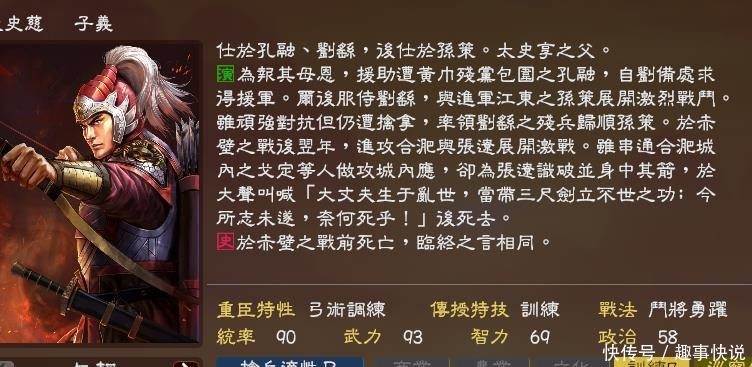 在正史《三国志》中有这样一段,“慈(太史慈)独与一骑卒遇策(孙策)。策从骑十三,皆韩当、宋谦、黄盖辈也。慈便前斗,正与策对。策刺慈马,而揽得慈项上手戟,慈亦得策兜鍪。会两家兵骑并各来赴,於是解散。”我先来给大家解释一番吧,大概意思是这样的,太史慈和一名骑兵在路上遇到了孙策,而孙策身边跟着黄盖,韩当,宋谦这样的大佬。太史慈上前与孙策单挑,打了好久,双方后援赶到,两边这才散去。但是大家有没有想到一点,那就是在这期间孙策身边的十余骑在哪里呢?打开一下脑洞,会不会就是太史慈带领的无名骑兵挡住了他们,以一敌十,要想啊,电视里演的什么武将单挑都是演绎出来的桥段,历史上根本不会发生这样的闹剧!这样想来,三国第一猛将才不是什么吕布赵云,而是这无名骑兵啊!