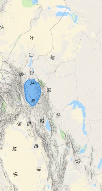 “大宛在匈奴西南,在汉正西。其北则康居,西则大月氏,西南则大夏,东北则乌孙,东则于阗”。