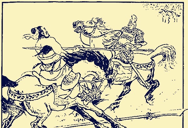 马超挺枪接战。斗了一百余合,胜负不分。马匹困乏,各回军中,换了马匹,又出阵前。又斗一百余合,不分胜负……许诸力大,一声响,拗断枪杆,各拿半节在马上乱打。