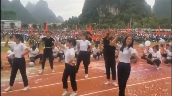 事件被曝光后,学校校长在接受记者采访时回应,跳舞的女同学当时面对评委席,所以同学们之间没怎么看到,这个舞蹈网上很多,比较流行,同学们就是在模仿,老师审查的时候,学生们撩衣服的幅度没有这么大。