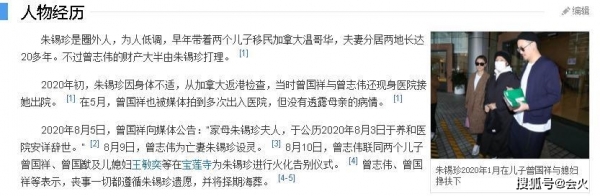10月11日,似乎是朱锡珍的第一个冥诞,曾志伟儿子曾国祥在社交平台晒出了一张碑刻照,并配文:"第一年没能跟你过生日,Miss U"。